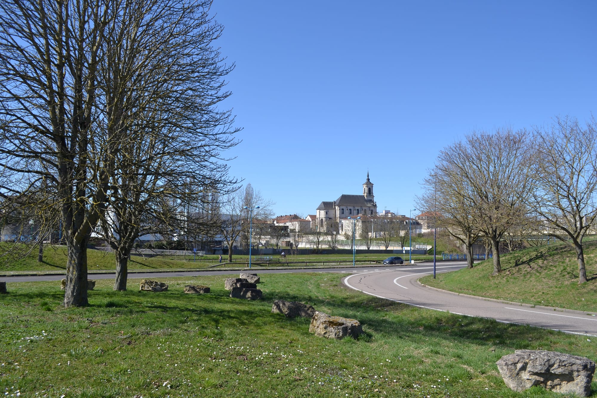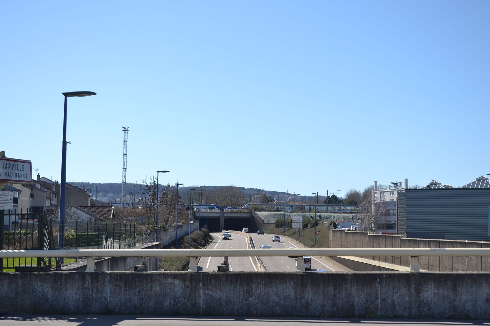 - La réparation des fractures (Temps 3) : Avec l'arrivée du MIL, la métropolitaine devient un boulevard urbain qui rétablit le lien Nord-Sud entre Nancy et Jarville-la-Malgrange. Simultanément, la reconversion des bretelles autoroutières en allées paysagères assure une connexion Est-Ouest entre les rives du canal. L'église de Bonsecours et la tour Marcel-Brot ne sont plus seulement liés par le paysage.